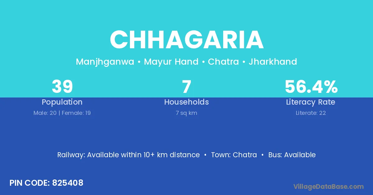 Chhagaria village has a total population of 39 people, of which 20 are males and 19 are females.