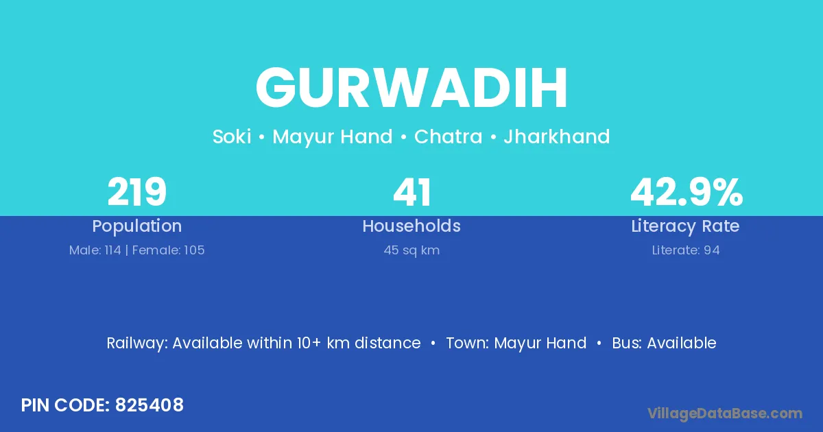 Gurwadih village has a total population of 219 people, of which 114 are males and 105 are females.