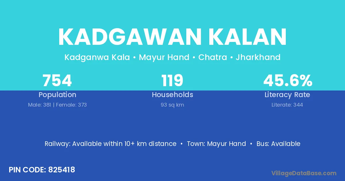 Kadgawan Kalan village has a total population of 754 people, of which 381 are males and 373 are females.