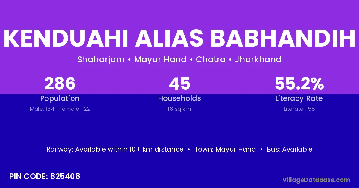 Kenduahi Alias Babhandih village has a total population of 286 people, of which 164 are males and 122 are females.