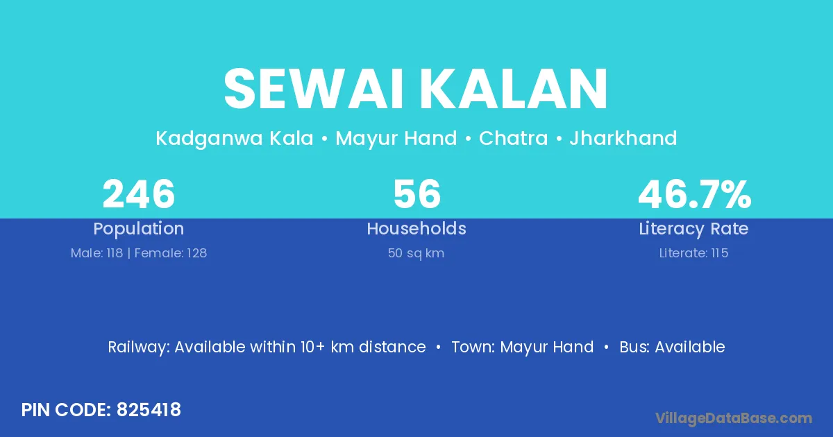Sewai Kalan village has a total population of 246 people, of which 118 are males and 128 are females.