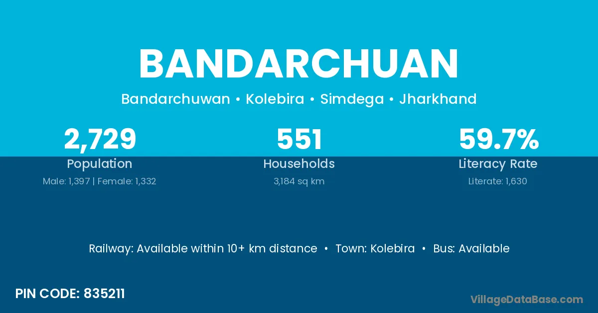 The literacy rate of Bandarchuan village is 43.11%. Male literacy stands at 47.00% and female literacy at 40.00%.