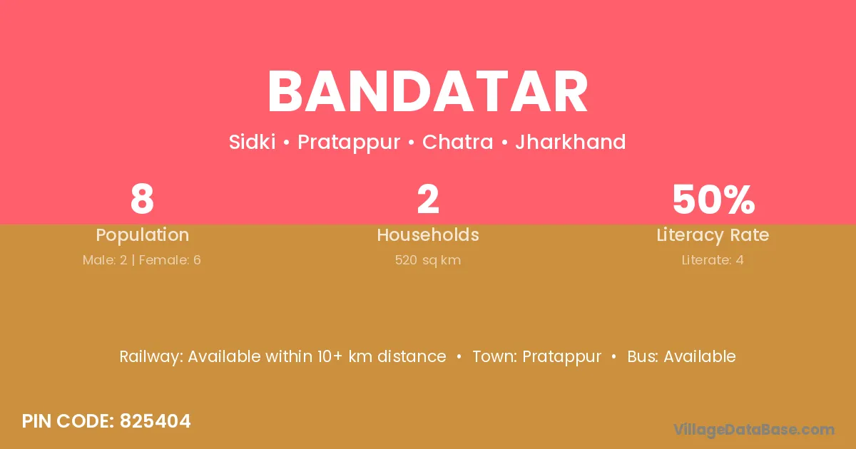 Bandatar village has a total population of 8 people, of which 2 are males and 6 are females.