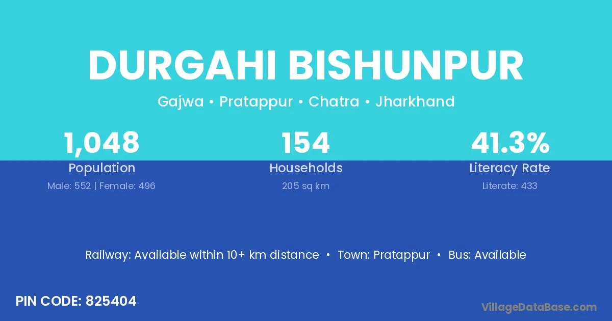 Durgahi Bishunpur village has a total population of 1,048 people, of which 552 are males and 496 are females.