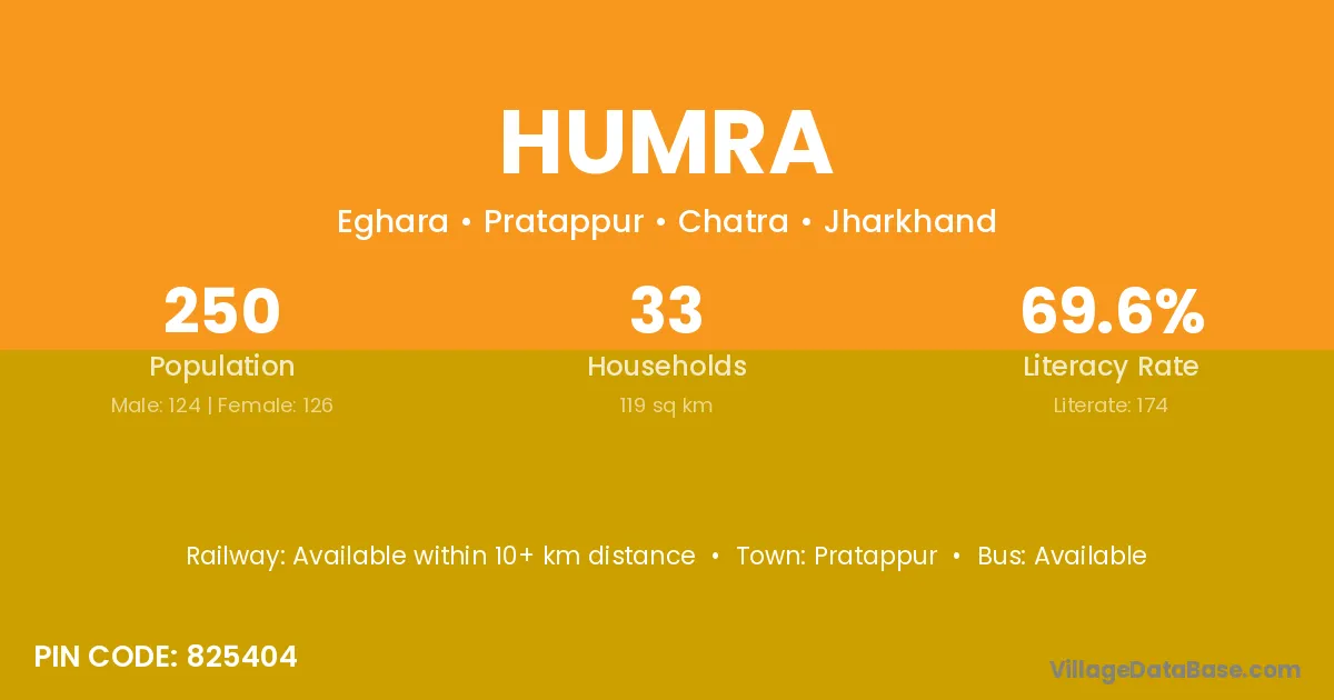 Humra village has a total population of 250 people, of which 124 are males and 126 are females.