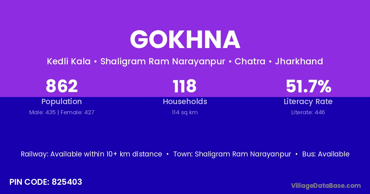 Gokhna village has a total population of 862 people, of which 435 are males and 427 are females.