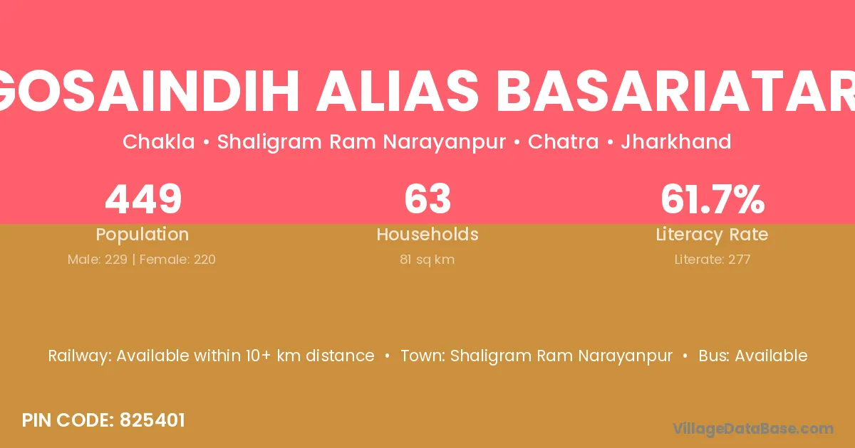 Gosaindih Alias Basariatari village has a total population of 449 people, of which 229 are males and 220 are females.