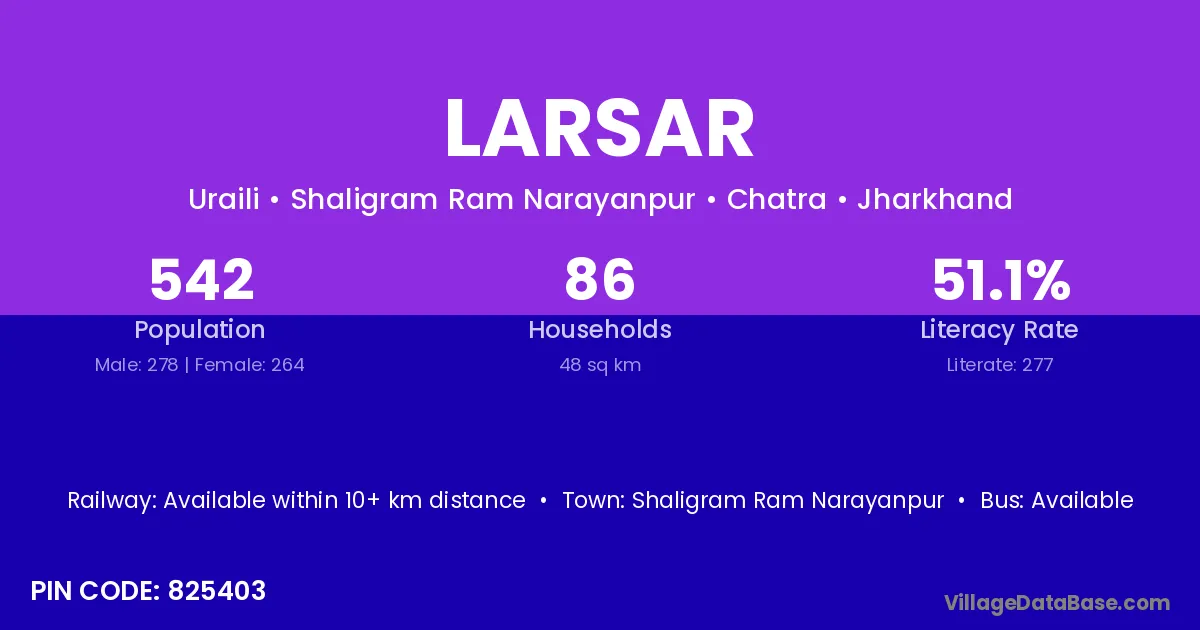According to Census 2011 information, the village code of Larsar village is 825403.