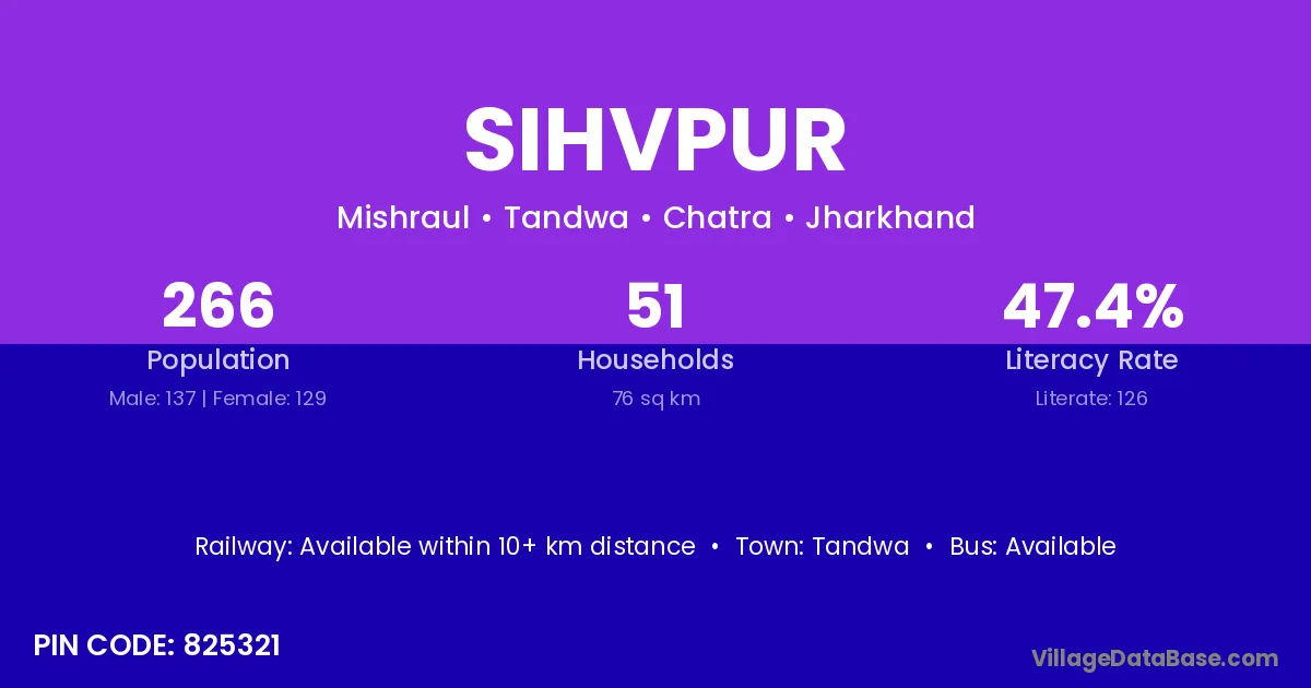 Sihvpur village has a total population of 266 people, of which 137 are males and 129 are females.
