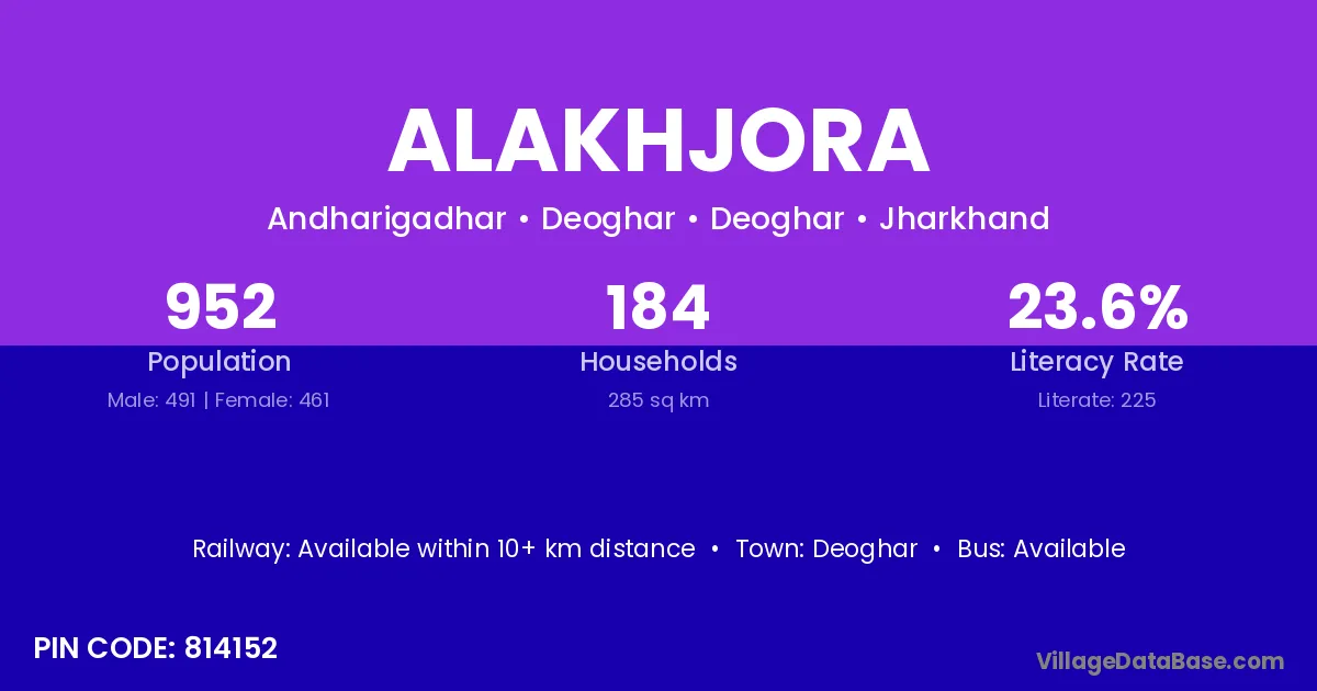 Deoghar is the nearest town to Alakhjora village for major economic activities