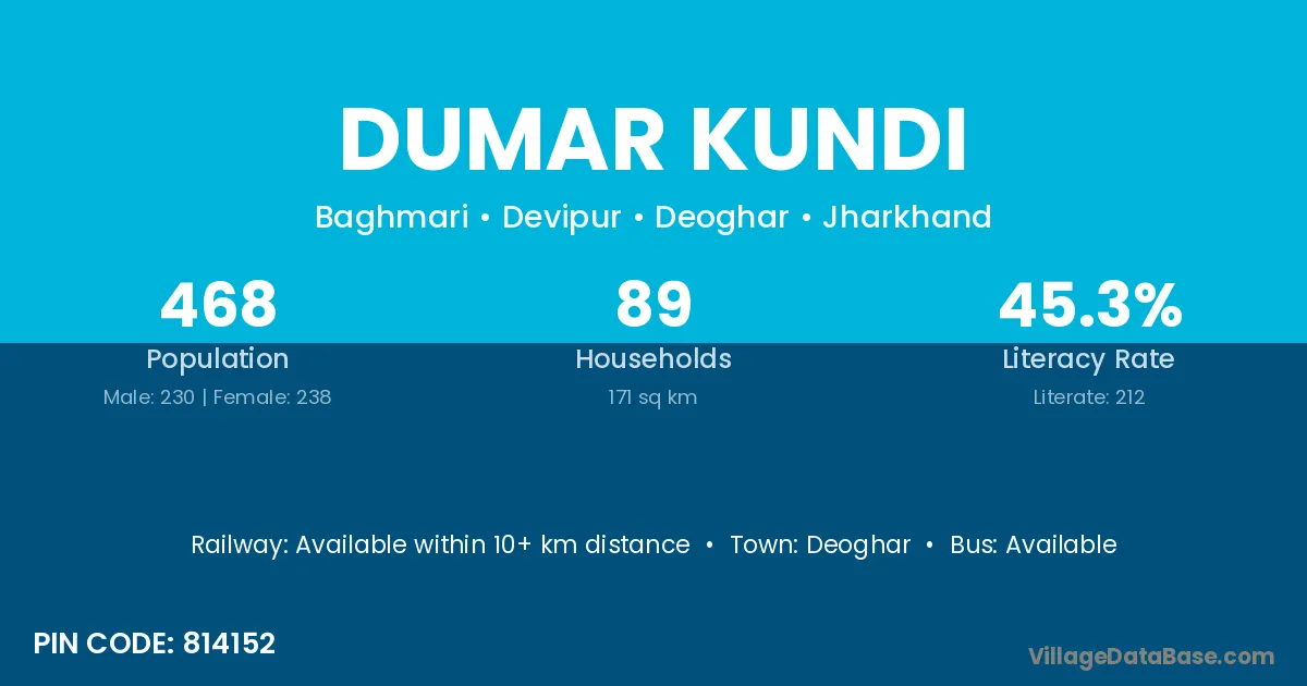 Deoghar is the nearest town to Dumar Kundi village for major economic activities