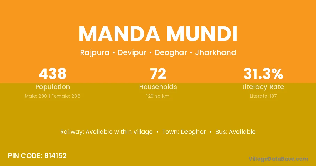 Deoghar is the nearest town to Manda Mundi village for major economic activities