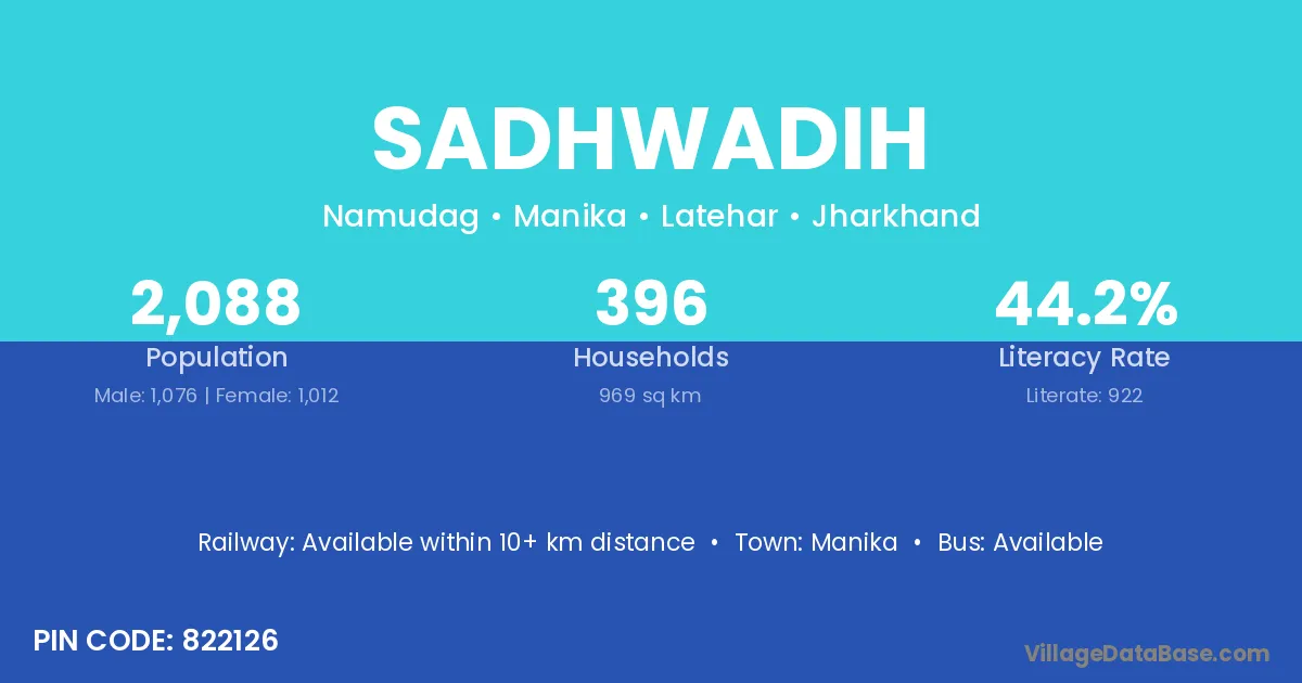 The literacy rate of Sadhwadih village is 40.82%. Male literacy stands at 56.08% and female literacy at 25.34%.