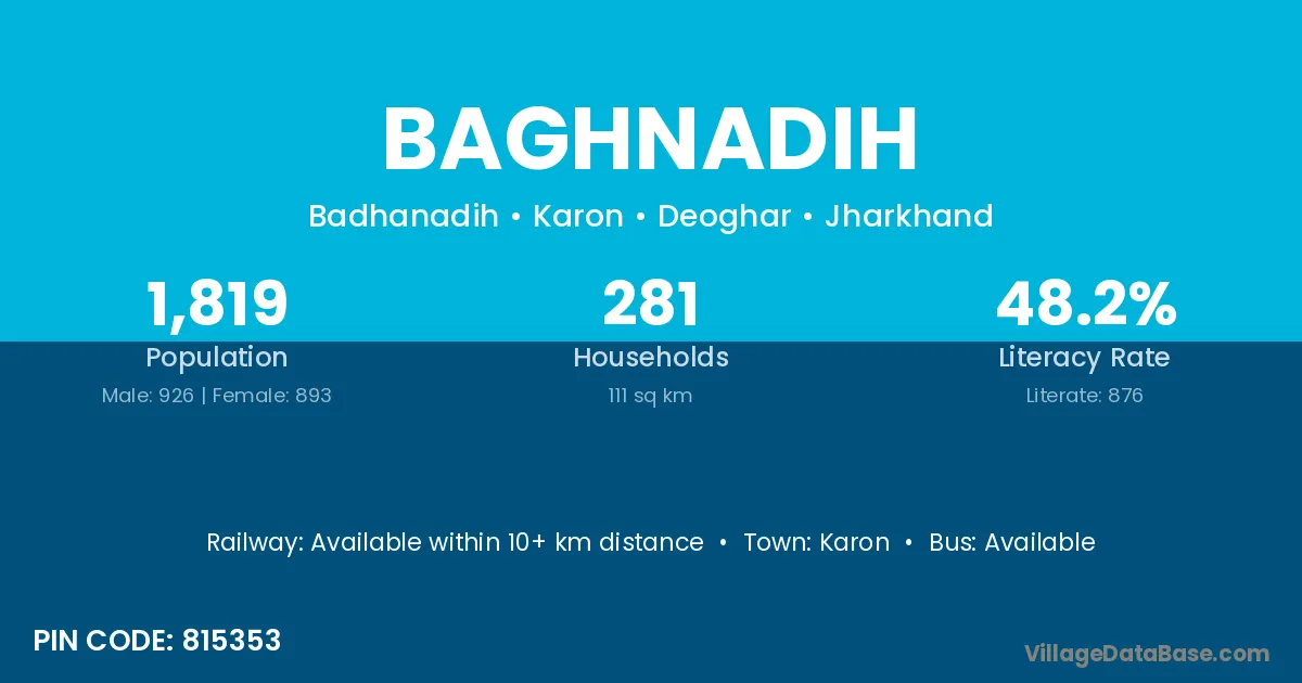 Baghnadih village is located in the Karon Subdivision of the Deoghar district in Jharkhand .