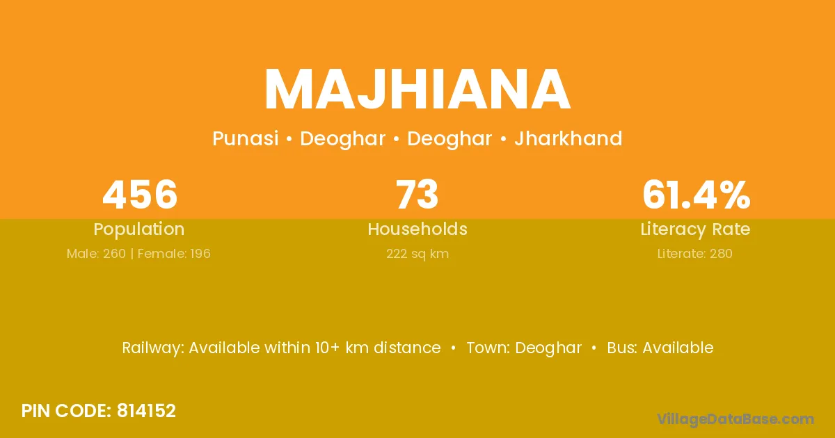 Majhiana village has a total population of 661 people, of which 348 are males and 313 are females.