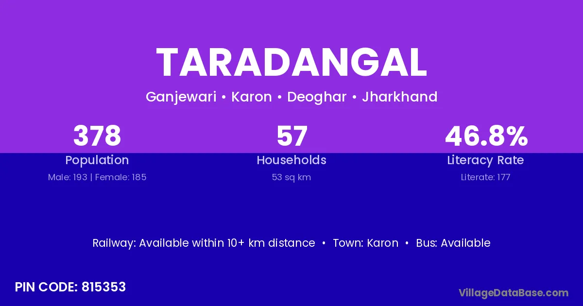 Taradangal village has a total population of 378 people, of which 193 are males and 185 are females.