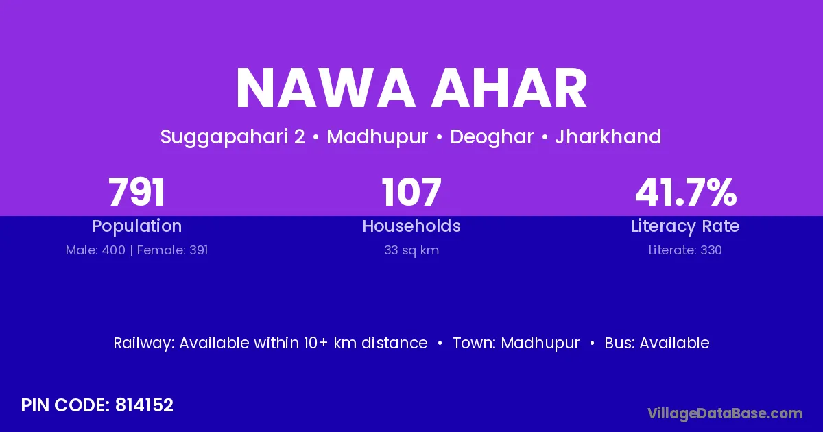 Madhupur is the nearest town to Nawa Ahar village for major economic activities
