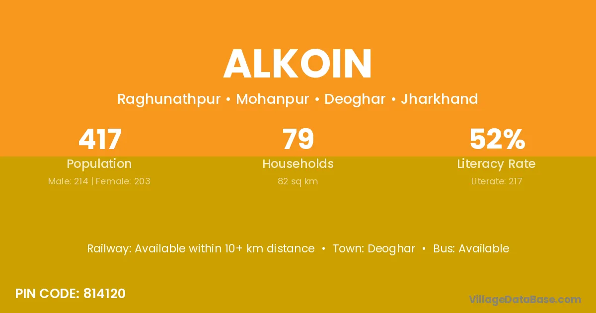 Deoghar is the nearest town to Alkoin village for major economic activities