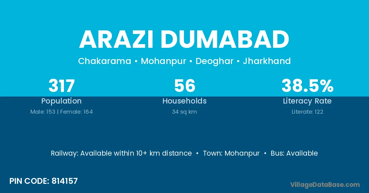 Arazi Dumabad village has a total population of 317 people, of which 153 are males and 164 are females.