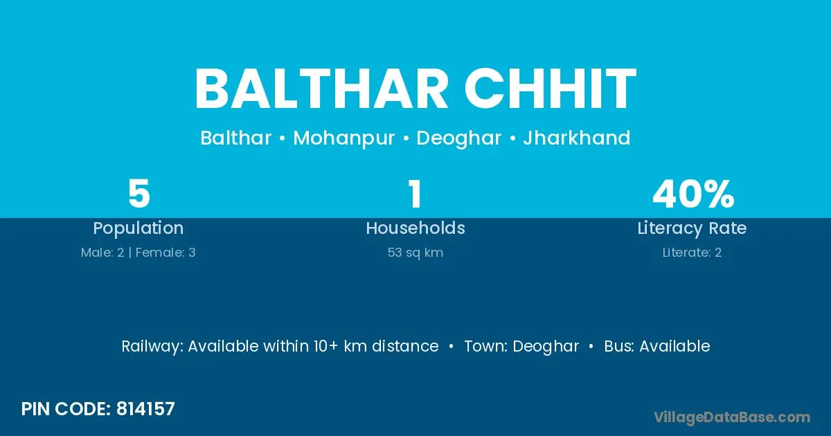Deoghar is the nearest town to Balthar Chhit village for major economic activities
