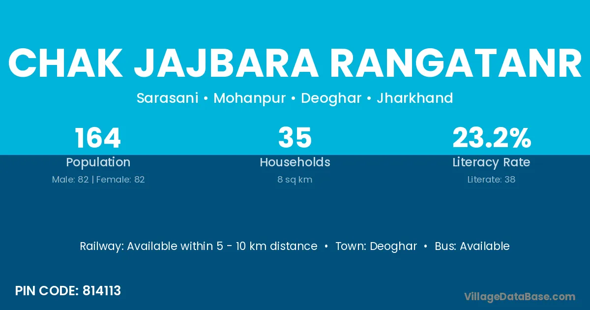 Chak Jajbara Rangatanr village has a total population of 164 people, of which 82 are males and 82 are females.