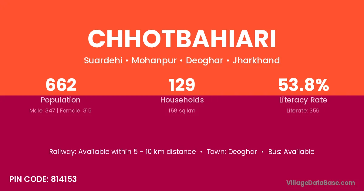Deoghar is the nearest town to Chhotbahiari village for major economic activities