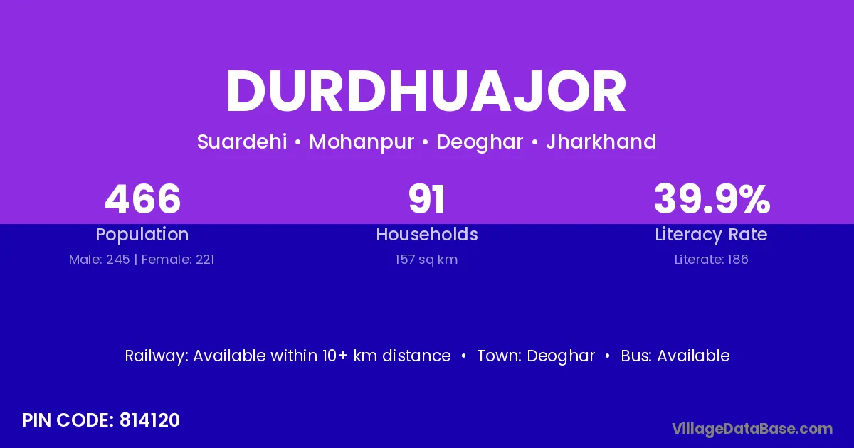 Deoghar is the nearest town to Durdhuajor village for major economic activities