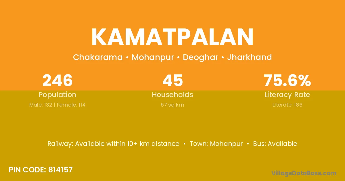Kamatpalan village has a total population of 246 people, of which 132 are males and 114 are females.