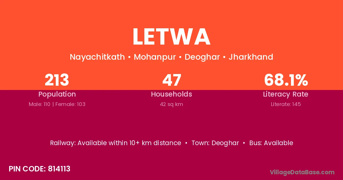 Deoghar is the nearest town to Letwa village for major economic activities