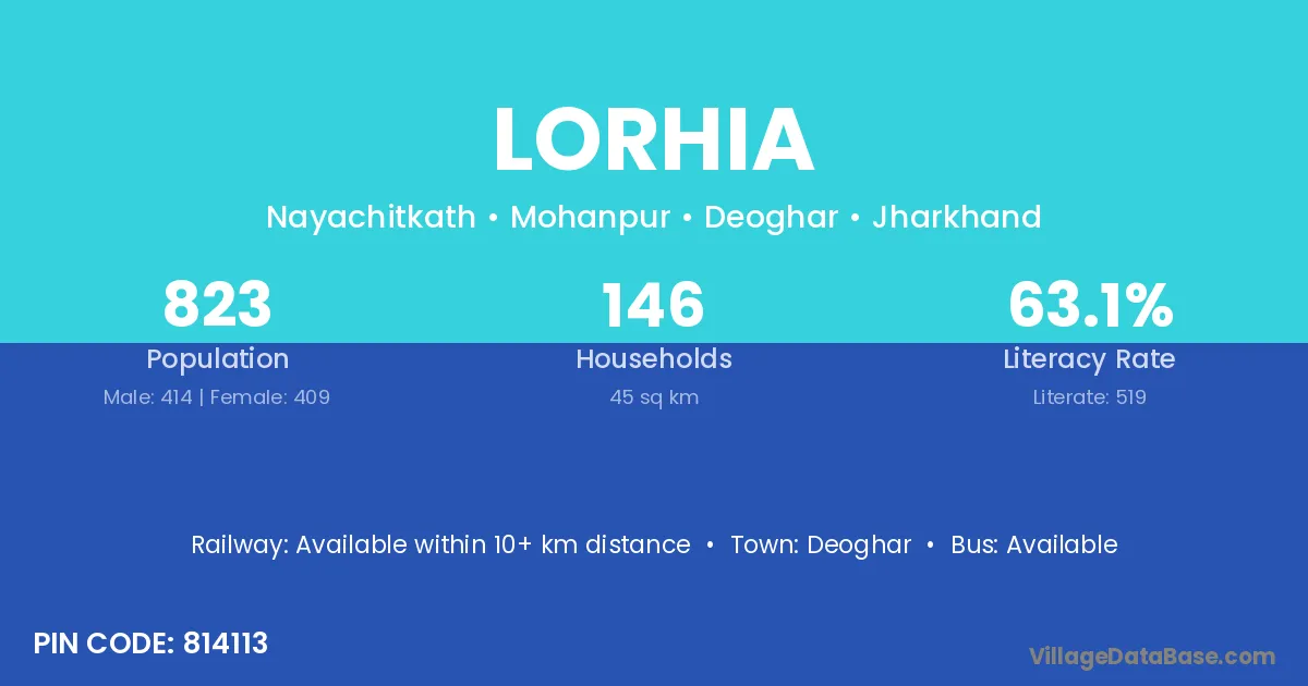 Deoghar is the nearest town to Lorhia village for major economic activities