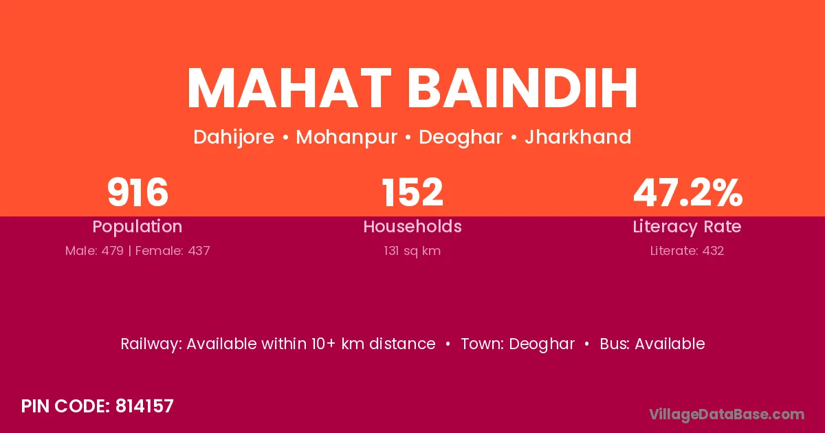 Deoghar is the nearest town to Mahat Baindih village for major economic activities