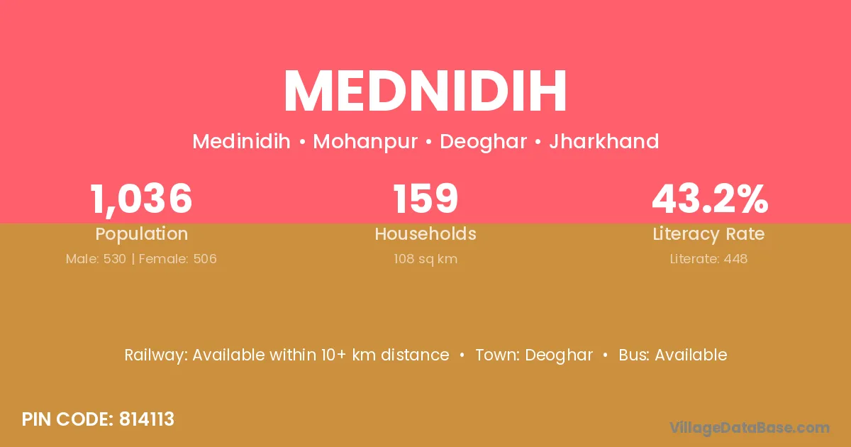 Deoghar is the nearest town to Mednidih village for major economic activities