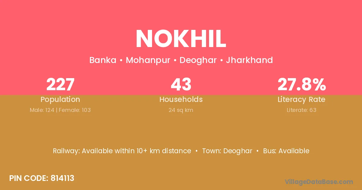 Deoghar is the nearest town to Nokhil village for major economic activities