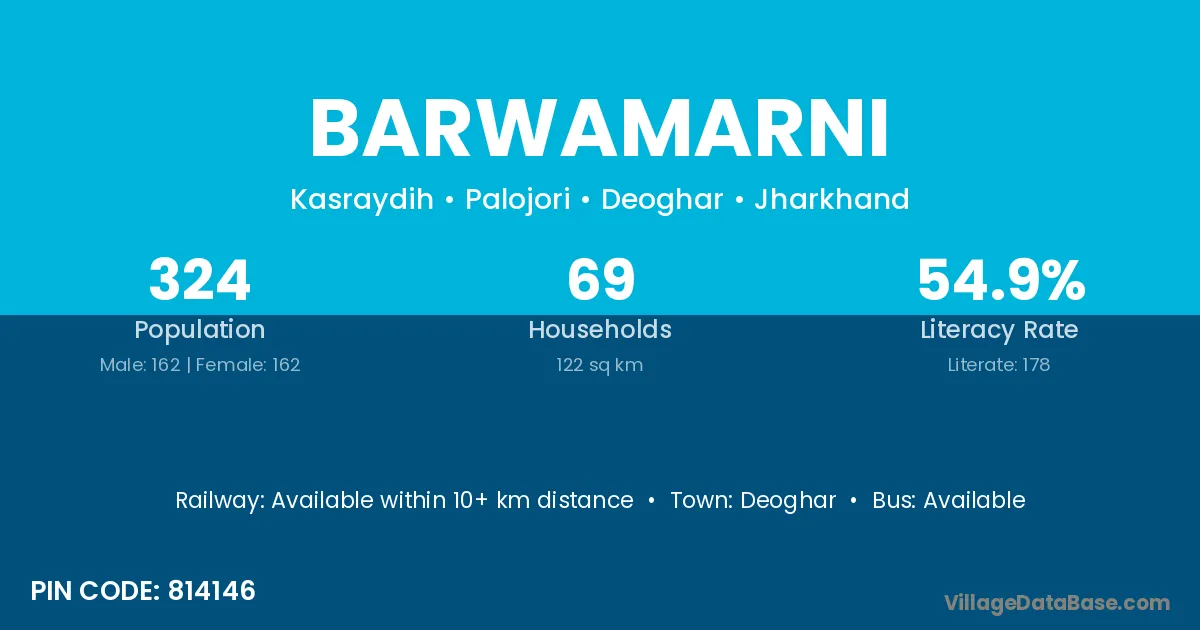Deoghar is the nearest town to Barwamarni village for major economic activities
