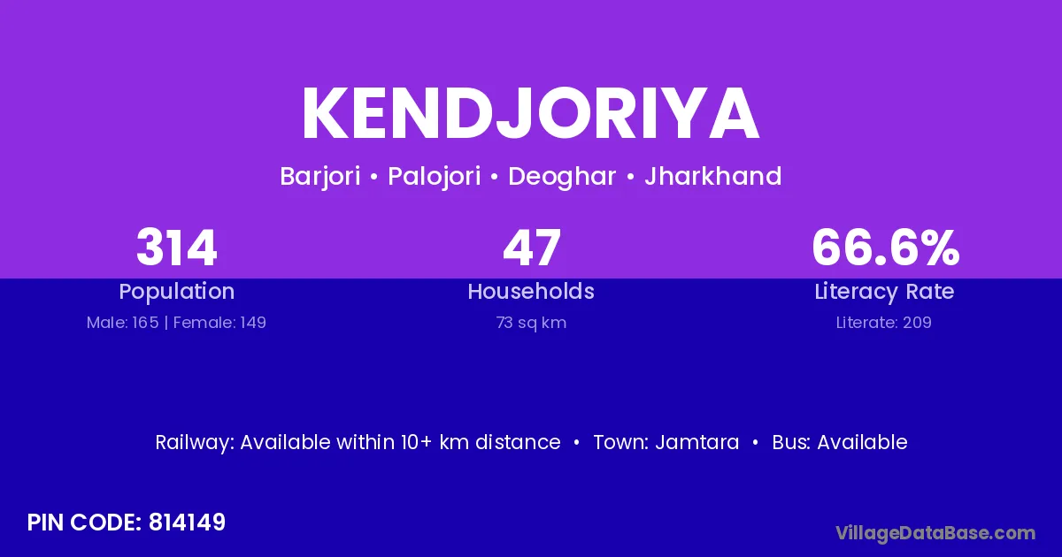 Jamtara is the nearest town to Kendjoriya village for major economic activities