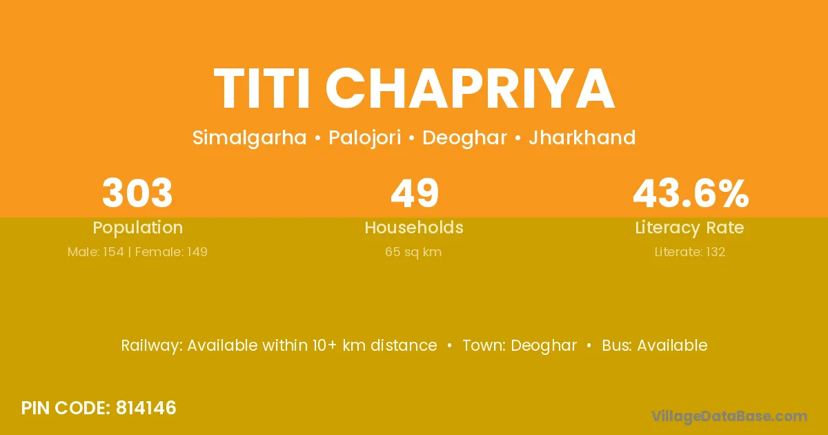 Deoghar is the nearest town to Titi Chapriya village for major economic activities