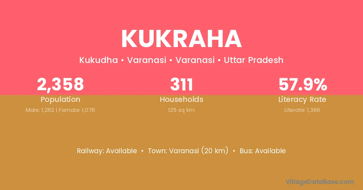 The literacy rate of Kukraha village is 70.36%. Male literacy stands at 76.08% and female literacy at 64.21%.