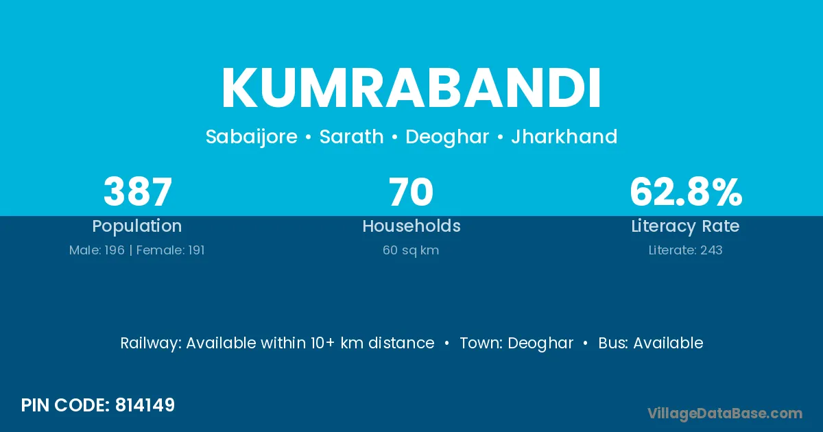 Deoghar is the nearest town to Kumrabandi village for major economic activities