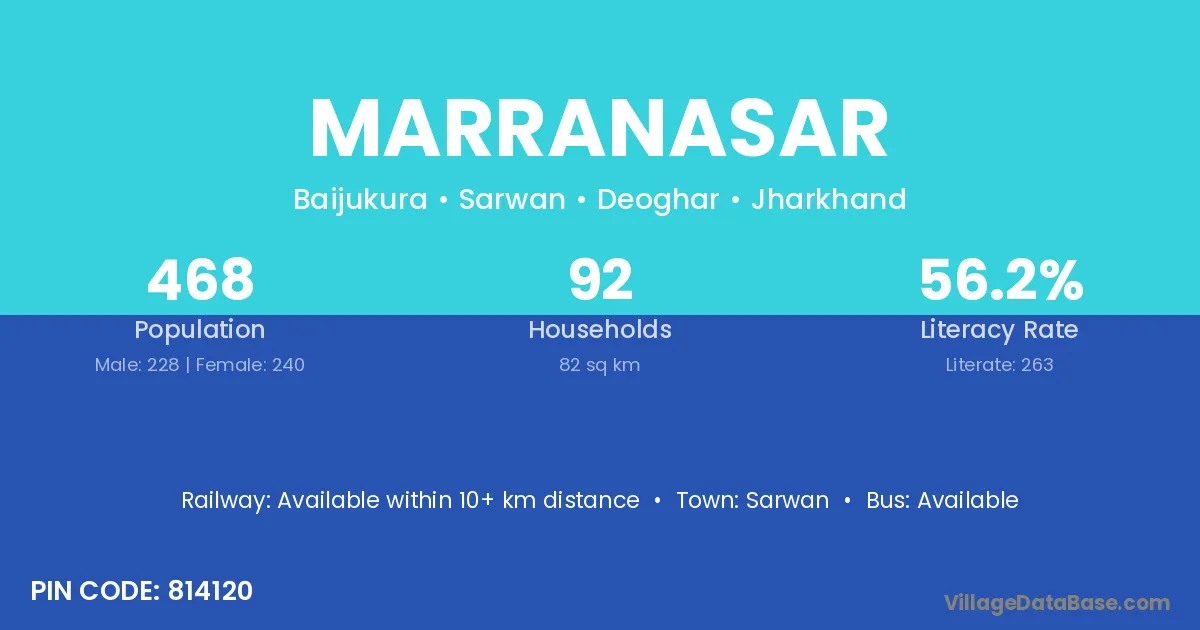 Marranasar village has a total population of 468 people, of which 228 are males and 240 are females.