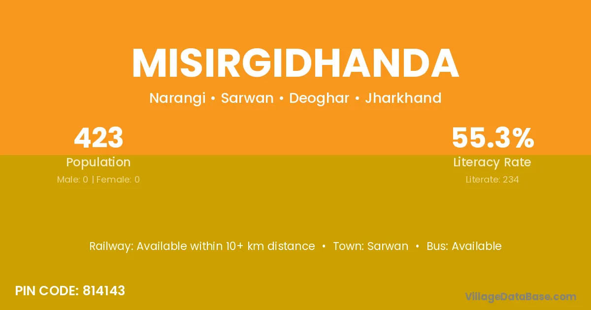 Misirgidhanda village has a total population of 423 people, of which 0 are males and 0 are females.