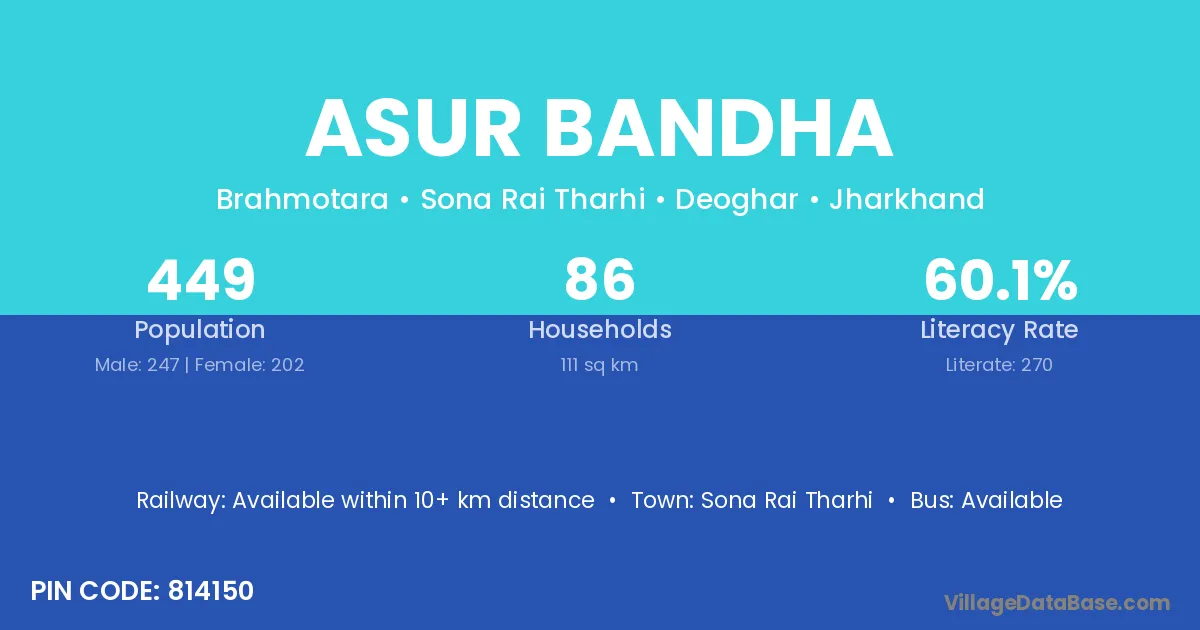 Sona Rai Tharhi is the nearest town to Asur Bandha village for major economic activities