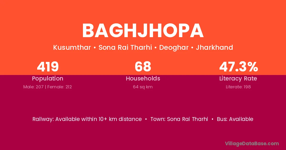 Baghjhopa village has a total population of 419 people, of which 207 are males and 212 are females.