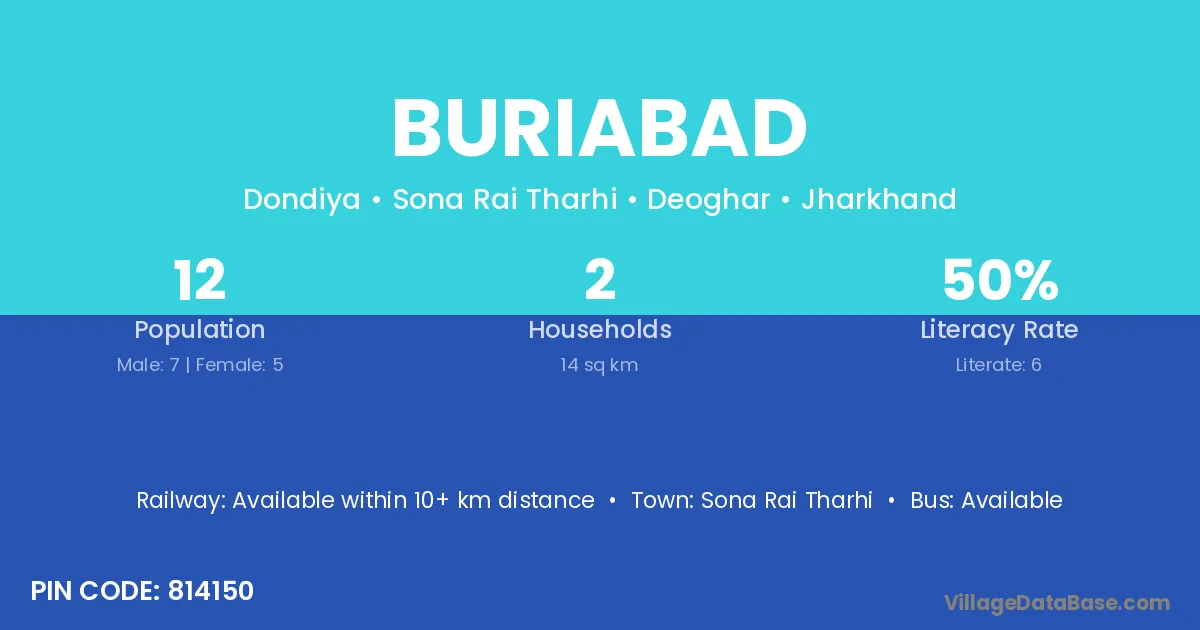 Buriabad village has a total population of 12 people, of which 7 are males and 5 are females.