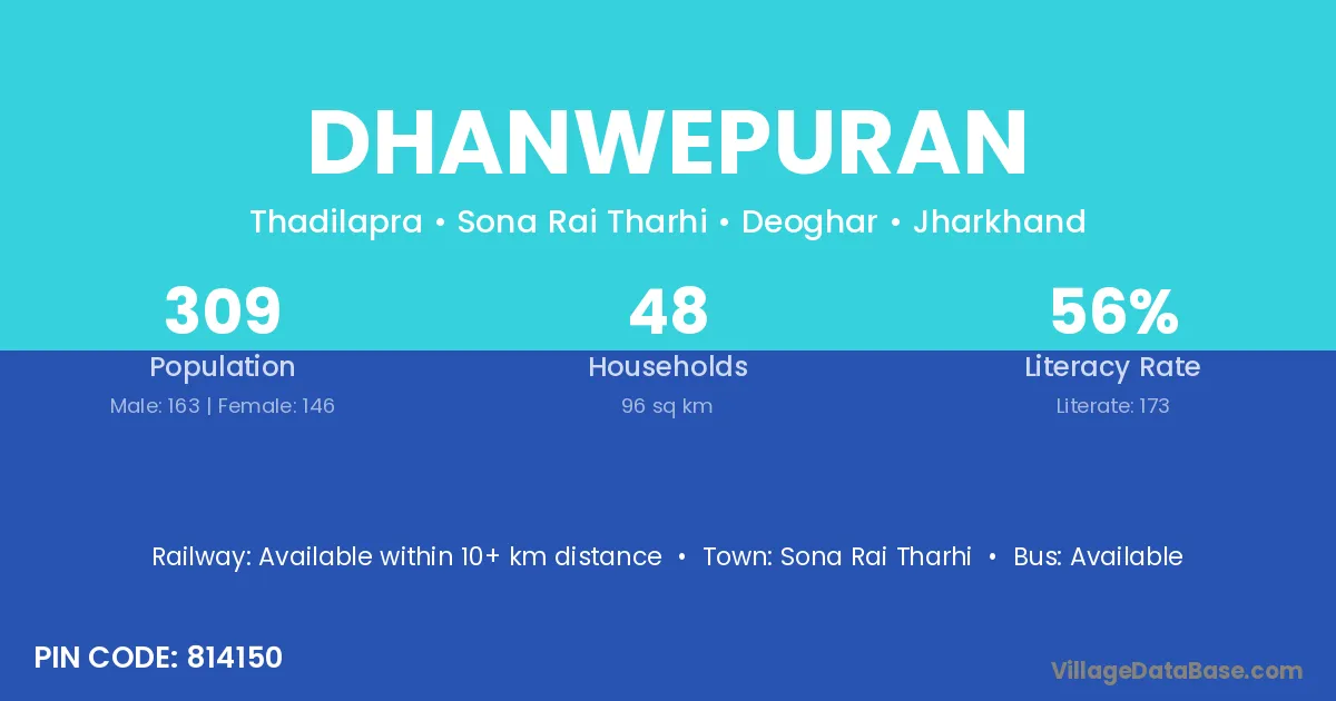Sona Rai Tharhi is the nearest town to Dhanwepuran village for major economic activities