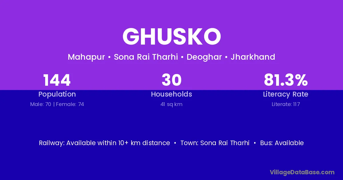 Ghusko village is located in the Sona Rai Tharhi Subdivision of the Deoghar district in Jharkhand .