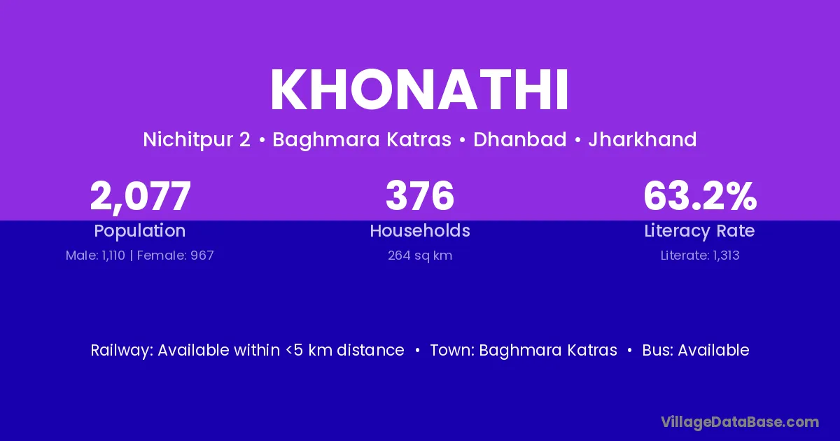 Baghmara Katras is the nearest town to Khonathi village for major economic activities