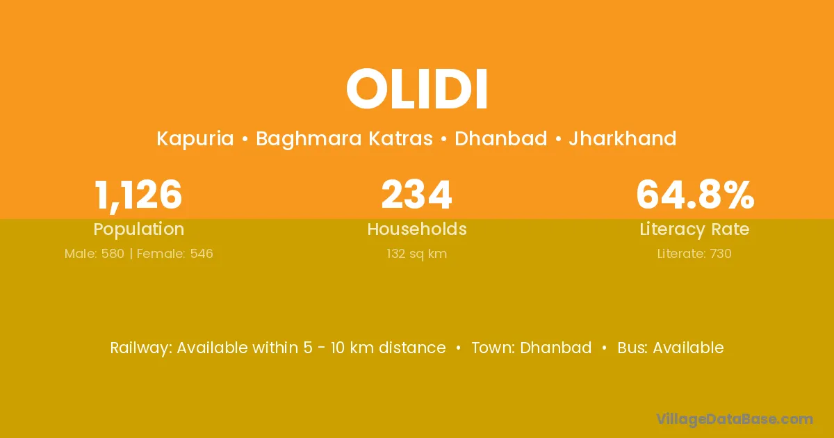 Dhanbad is the nearest town to Olidi village for major economic activities