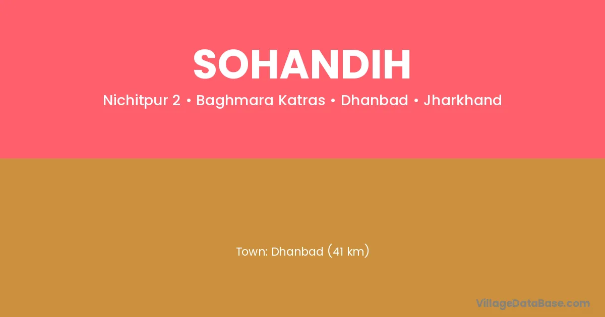 Dhanbad (41 km) is the nearest town to Sohandih village for major economic activities and is located approximately 41 km away.