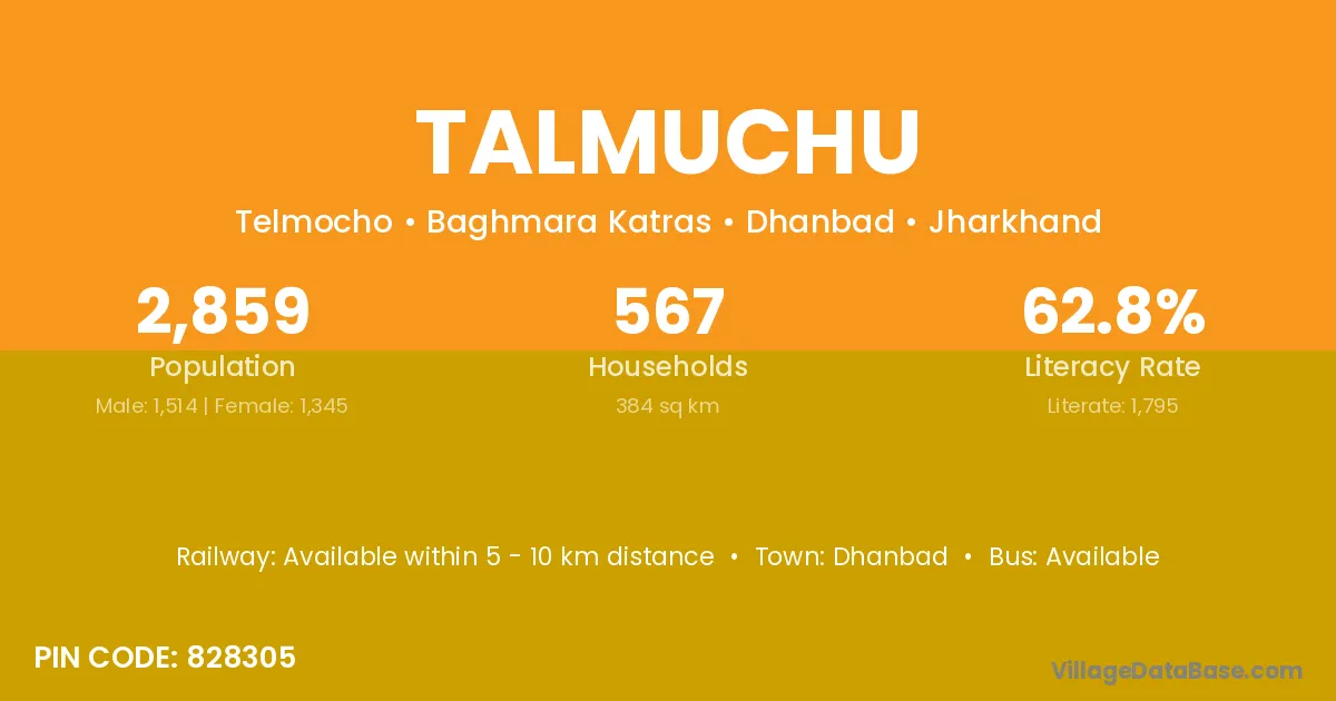 Dhanbad is the nearest town to Talmuchu village for major economic activities