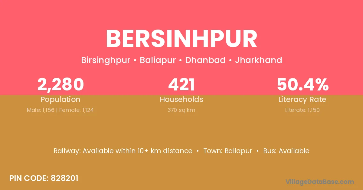 Bersinhpur village has a total population of 2,280 people, of which 1,156 are males and 1,124 are females.